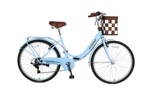 Ecosmo 26" Folding Ladies shopper Bike in White, 7 SP Shimano, With free Fabric Basket – 26LF08W